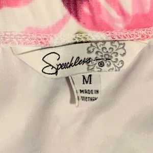 Speechless floral print dress. Junior size medium. Pleated waist ties in the back. Sweetheart cut. Adjustable spaghetti straps. Bubble hem. Worn once. Excellent condition.
