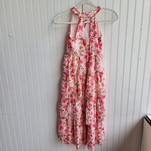 Speechless Girls Multi-Tiered Ruffled Pink Floral Dress Maxi Long Sz 8