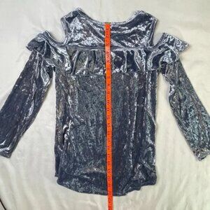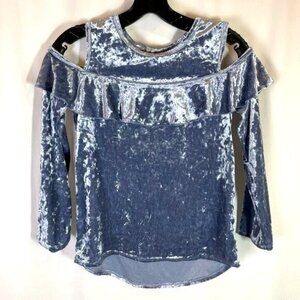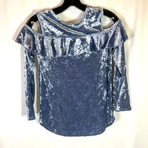 Speechless Girls Size L Velour Off Shoulder Top Pewter Blue Long Sleeves