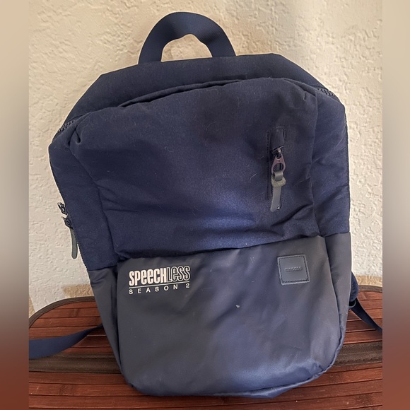 Backpack given to crew of Speechless Season Two. Embroidered logo, nice zipper pulls, front pockets and interior pockets including padded laptop pocket. Great condition, no damage, never used.