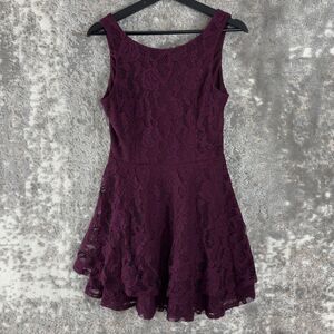 Speechless Juniors Size 5/M Floral Sleeveless Lace Flare Mini Dress Purple Zip
