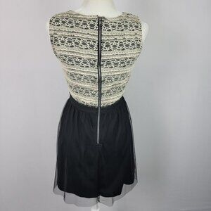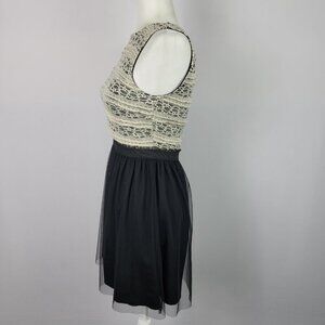 Speechless Juniors Small Lace & Tulle Elastic Waist Dress Ivory Black Sleeveless