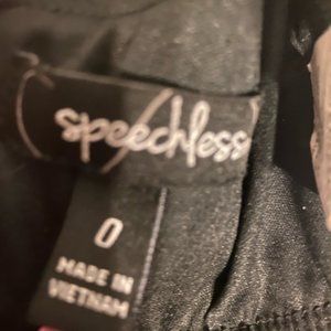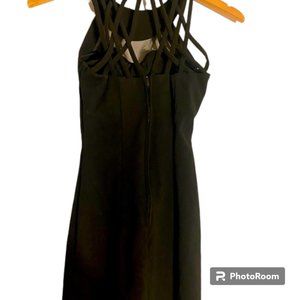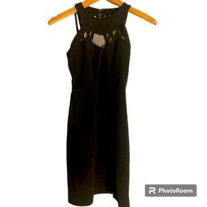Speechless size 0 black fitted cocktail dress with mesh in front, sweetheart chest with padded bra cup and beautiful strappy back.