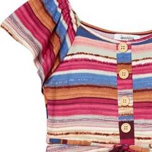 Speechless Kids Stripe Flutter Sleeve Dress ~ Berry Pink ~ New!