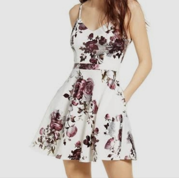 Chic dress by Speechless. Features delicate lace accents. Classic white color. This dress has 2 pockets and back zipper. Gently worn .Size 5