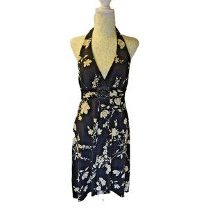Speechless Medium Halter Style Black and Cream Tropical Dress Preloved