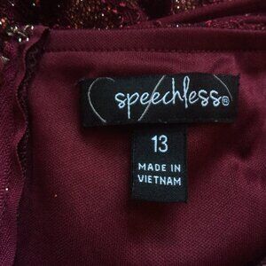 Speechless Mulberry Spaghetti Strap Glitter Lace Fit-and-Flare Dress Mini Size 13