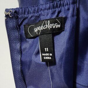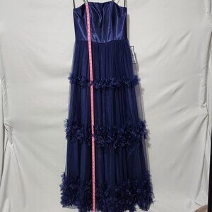 Speechless Navy Blue Formal Strapless A-line Dress with 3D Florals - Size 11