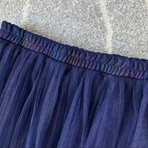 Super cute navy tulle skirt with rainbow sheen from Speechless. Stretch waist and comfy flowy skirt. Has a pretty, subtle rainbow undertone. In excellent condition, no stains or holes. 11-14” across stretch waist, 15” length.