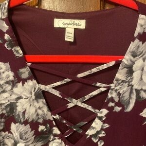 Speechless Purple Gray Crisscross V-Neck Long Sleeve Floral Dress