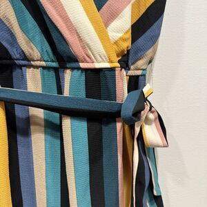 Speechless Romper Shorts Sleeveless Surplice Stripe Retro Belted Women sz Small