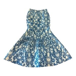 Speechless Satin Maxi Trumpet Skirt Blue/White Scroll Pattern Sz L