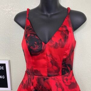 Speechless Satin Red and Black Floral Pattern Cocktail Dress With Pockets Size 1