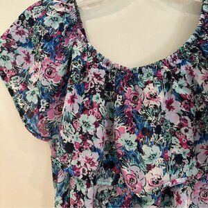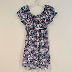 Speechless Sheer Floral Off The Shoulder Ruffle Fully Lined Mini Dress Size XS. This is a beautiful and comfortable dress for Spring and Summer. Colorful floral print on black. Excellent, pre-owned condition. Ships from a non-smoking home,