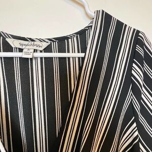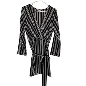 Featured in contrast stripes, this faux wrap dress by Speechless elevates your wardrobe in sleek style. Great used condition!