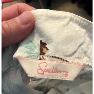 Speechless Super cute floral skirt. Cream with light blue flowers and brown satin trim. No size tag. Measures 15" waist.