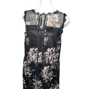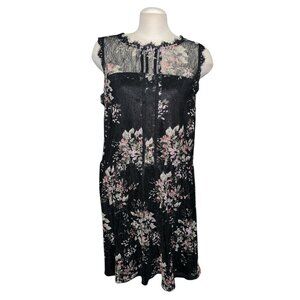 Speechless Sz 2XL Black Sleeveless Floral Lace Dress With Sheer Neckline & Gathe