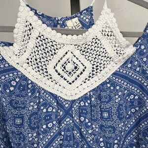 Speechless Top Crochet Tunic Cold Shoulder Blue White Large Boho Hippie Romantic