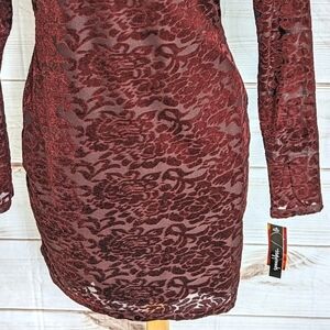 Speechless Velvet Mock Neck Mini Dress in Semi Sheer Red Floral Size Med NWT