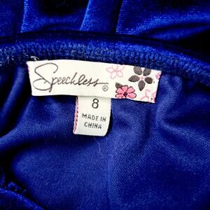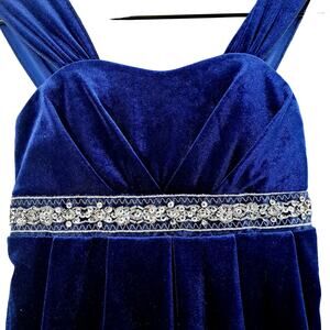Speechless velvet dress. Sweetheart neckline. Beaded and sequin tied waist. Pleated balloon hem skirt. Lined.