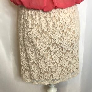 Speechless Woman’s Coral/Beige Lace Chiffon Top Lined Mini Dress Size L
