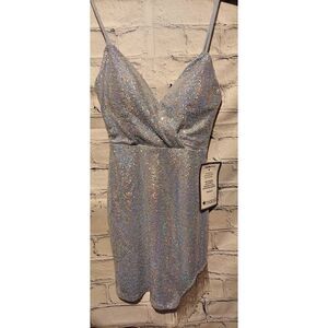 Speechless Womens 0 Sequin Sparkle Party Mini Dress Adjustable Straps Blue NWT