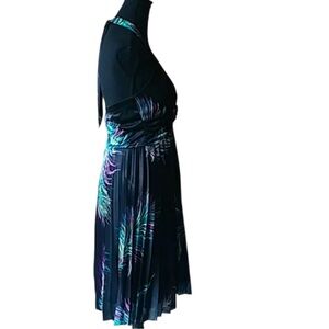 Speechless Women’s Halter Dress Black Feather Print Knee Pleated size S