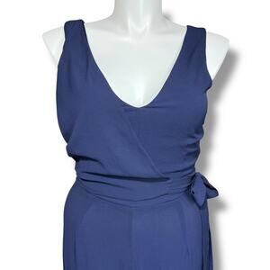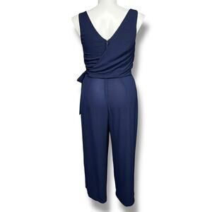 Speechless Womens Jumpsuit Sleeveless V Neck Wide Leg Tie Waist Navy Blue XL
