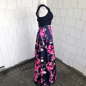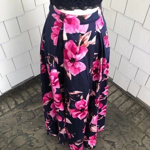 Speechless Women's Navy/Pink Floral/Lace Top/Skirt Two Piece Set sz Junior's 1