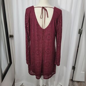 Allover crocheted lace provides 360-degree style on this chic shift dress by Speechless. Shift silhouette. Shell:polyester; lining: polyester. Scoop neckline with low-scoop back. Self-tie at back. for more details.