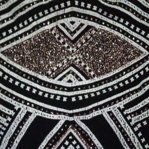 'size 5' measurements in photo. black with white and gold sparkle. some crackling has happened as was washed but not super noticeable and in good shape. brand speechless