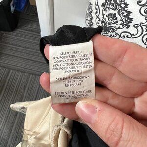 Speechless cream lace top with built in pads. Adjustable spaghetti straps. Black sheer maxi dress with mini skirt lining. Knees and lower legs will be seen through the sheer fabric. Back zipper closure. 100% polyester. Contrast 62% cotton 32% polyester 6% rayon