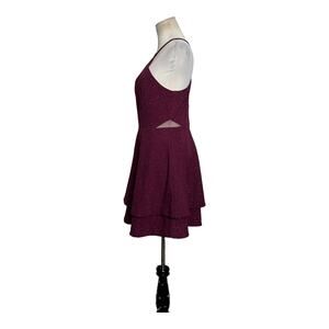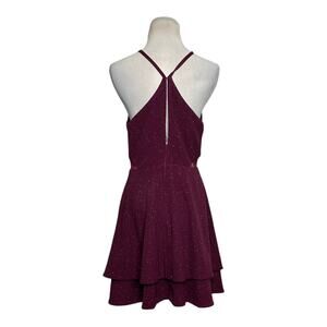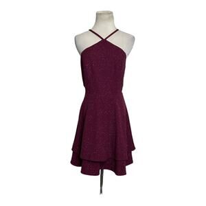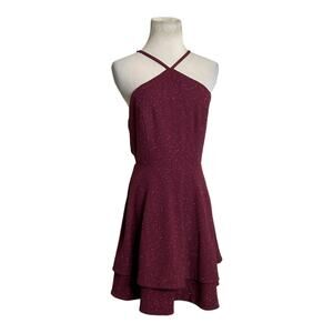 Speechless shimmery red Y neck layered skirt mini dress size M