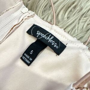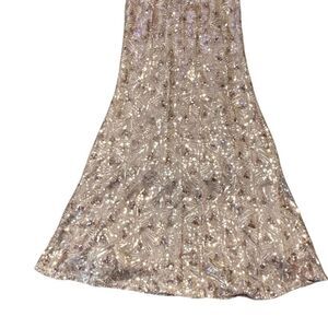 Speechless sparkly long glamorous ball gown size 5. Absolutely gorgeous! Form fitting, rose gold sequins, dainty! You’ll be catching eyes in this amazing dress. It was only worn once to a gala and got tons of compliments. Zippers down the back.
