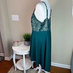 Speechless womens Emerald Green Silver Glittered Bodice Hi Low Dress size 18
