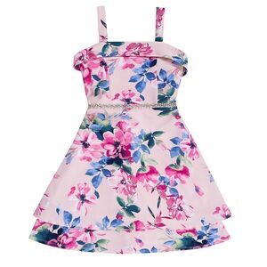 She'll love the floral charm of this girl's Speechless jeweled waist floral fit and flare dress.