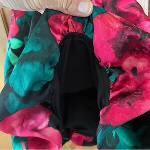 Elegant floral dress with vibrant pink and green accents. Ideal for formal events. Like New, no flaws. Let me know if you have any questions!