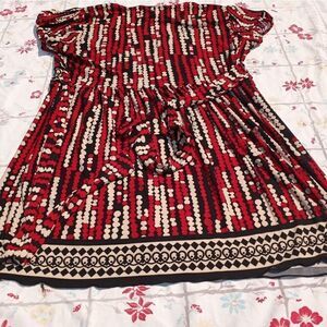 Speechless Polka Dots Multicolored Shortsleeves V-neck Back Belt Women's Top XL.