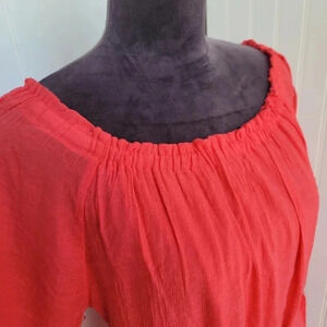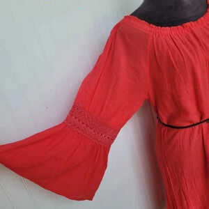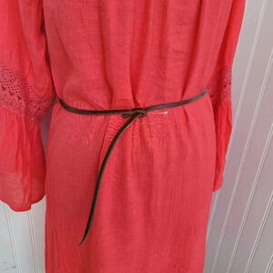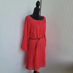 Speed Control ¾ Bell Sleeve Crotchet Detail Coral Pink Casual Dress Plus Size 1X