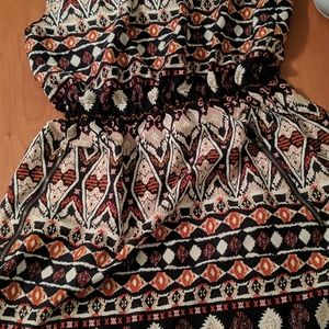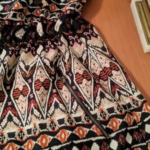 This boho mini dress has an elastic waistband and cute zipper pockets! Cream, navy blue, pink and orange.