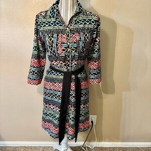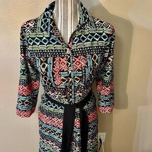 Speed Control Dress Small Black Geometric Pattern Hot Pink Teal Green White