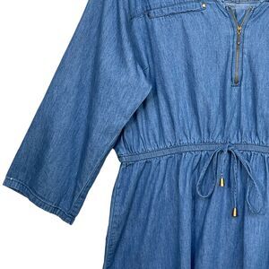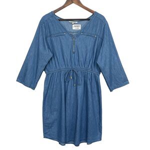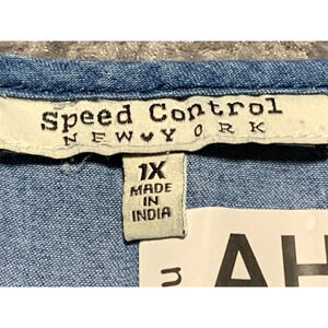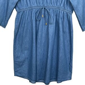 Speed Control Dress Women 1X Blue V Neck Cotton Pullover Roll Tab Sleeve Cinched