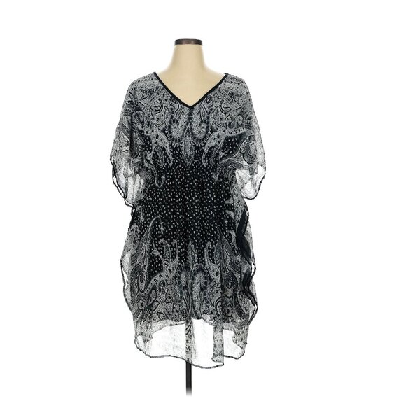 Speed Control New York 1970's Inspired Black Gray Paisley Boho Kaftan Dress