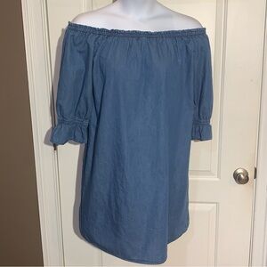 Speed Control New York Women’s Sz 1X Blue Chambray Off Shoulder 3/4 Sleeve Dress