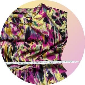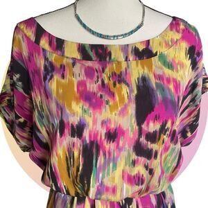 Speed Control Tunic Short Mini Dress Women 3X Plus Yellow Pink Watercolor Print
