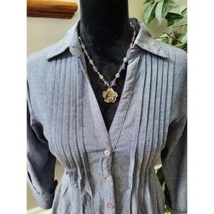 Speed Control Women's Gray Cotton Collared Long Sleeve Button Down Shirt Size L.