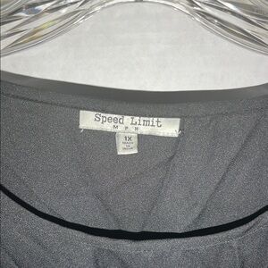 This black blouse from Speed Limit 98 features a relaxed fit with cap sleeves and a buttoned front, offering a stylish yet comfortable look. The soft fabric drapes beautifully, making it a versatile addition to any wardrobe.