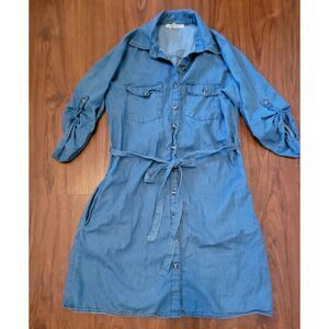 Speed Limit Cotton Chambray Button Shirt Dress Women's Small Belted Pockets