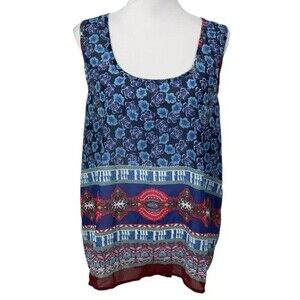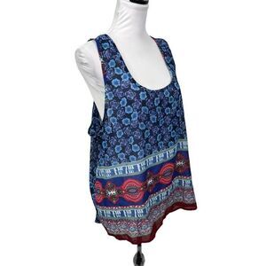 Speed Limit MPH Blouse Plus Size 2X Sheer Split Racer Back Over Top Floral Aztec