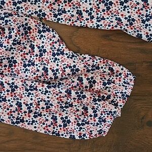 Speed Limit women's floral shirt with smocked back size XL-XXL. Size isn't marked but I wear XL-XXL & it fits me fine. The neckline is elastic so it can be worn on or off the shoulder.